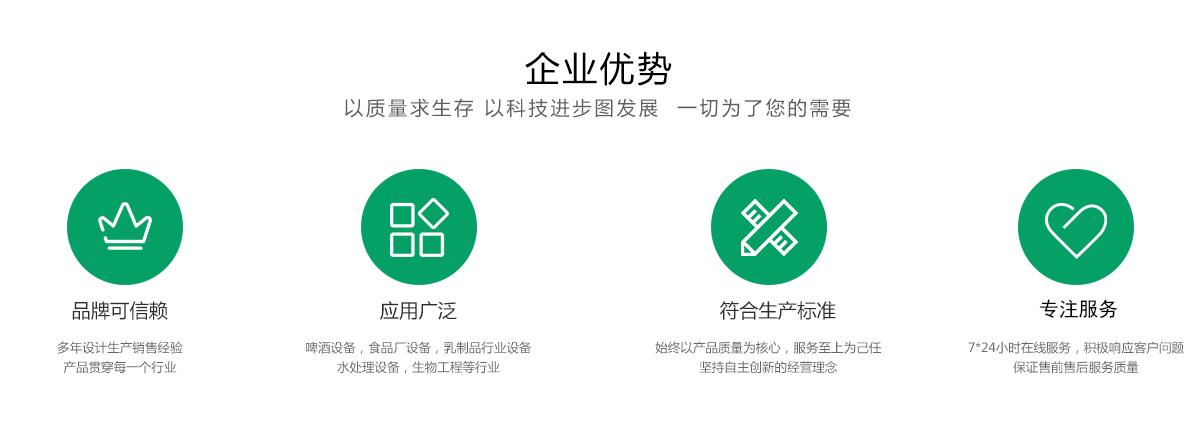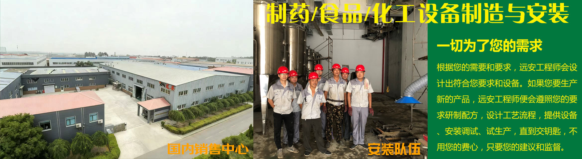 天津远安流体设备有限公司主要从事制药设备、啤酒设备、食品厂设备、乳制品行业设备、水处理设备、生物工程、卫生级流体阀门管件、非标产品定制、工程安装、技术咨询与服务为一体的企业。公司以"诚信服务客户为本,以"技术创新"为基础,以质量求生存,以科技进步图发展,"一切为了您的需要"是我们的服务宗旨。在制药、食品、化工行业众多客户的反馈中:有效地解决了客户在生产过程中的各种疑难问题,取得了较好的口碑,得到广大用户的一致好评和充分信赖。通过与客户的合作,也更进一步提高了我们解决问题的能力。 并且根据您的需要和要求,远安工程师会设计出符合您的要求和设备,如果您要生产新的产品,远安工程师便会遵照您的要求研制配方,设计工艺流程,提供设备、安装调试、试生产,直到交钥匙,不用您费心,只要您的建议和监督。 我们还不断吸收引进国内外技术,如美国OTTOARC全自动焊机,我们还引进高素质人才,强化企业...